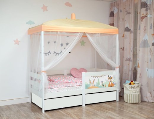 - Рекомендуемый размер матраса 800х1850х180 мм, при этом высота спального места составит 470 мм