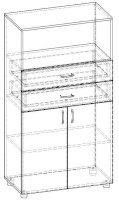 Двухстворчатый стеллаж с двумя ящиками Лидер СТ.040.800-01 (Баронс)