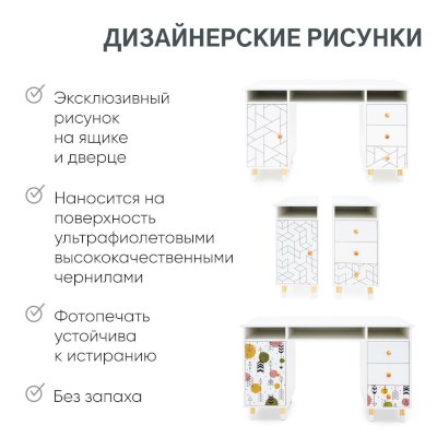 - На тумбе и ящиках разработана дизайнерская фотопечать