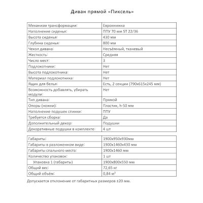 Диван Пиксель (Аквилон) – товар доступен к покупке в интернет-магазине dommebeli-v-nalchike.ru. Цена – 30 317 руб. без учета доставки. Стоимость дополнительных услуг и сроки получения мебели уточняйте у менеджера. Возможен безналичный расчет, оплата по карте на сайте.