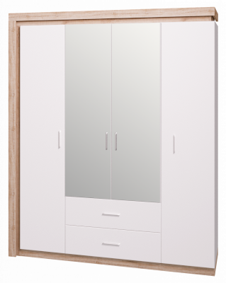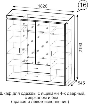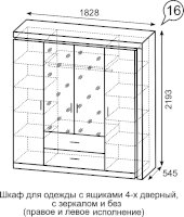 Шкаф для одежды с ящиками 4-х дверный с зеркалом №16