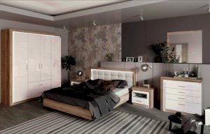 Шкаф с ящиками 4-х дверный с зеркалом №16 Люмен (Ижмебель)